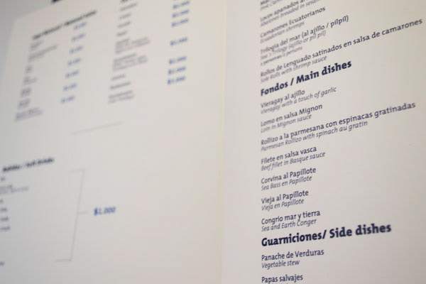 Carta menú elaborada para Restaurant Nautilus ubicado en Pichidangui / Chile.